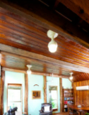 The carriage was used as a workshop while the house next door was being built (Otways Loft). The builder was an environmentalist, tinkerer and craftsman who sourced recycled materials (way before it was trendy), locally milled timber, and used parts of the train in construction of the house. The grid structure of the house at Otways Loft is based on the width of the compartments in the train (7ft or 2.1m). Panels stripped out of the train fit perfectly in to the grid of Eucalypt poles of the house: Except they often didn’t because the poles were not straight with knots and bends. There was a lot of trimming and plaining to make it work. If you walk around Otways Loft you’ll see the vast amount of timberwork to fit all the pieces together. Apart from the giant poles and locally milled timber, there is ceiling timber taken from a local church that was demolished in the late 70s early 80’s, that covers most of the ground floor ceiling. The builder found a huge cypress and dragged it to a local mill. The stairs were cut from it, and we think the benchtops in the kitchen. Probably the most impressive construction task achieved, was cutting shingles for roofs of both the house and the train carriage. Shingles need to be split, not sawn or it rots. There would have been thousands of shingles to hand split, then nail on. Unfortunately they didn’t last on the house, and we are slowly replacing them on the carriage.